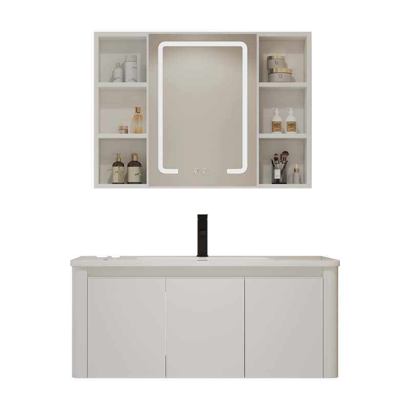 Cream White 60CM Ceramic Basin Cabinet (Single Cabinet) Cream White 60CM Ceramic Basin Cabinet Mirror Cabinet Cream White 60CM Ceramic Basin Cabinet Smart Round Mirror Cream White 60CM Ceramic Basin Cabinet Smart Mirror