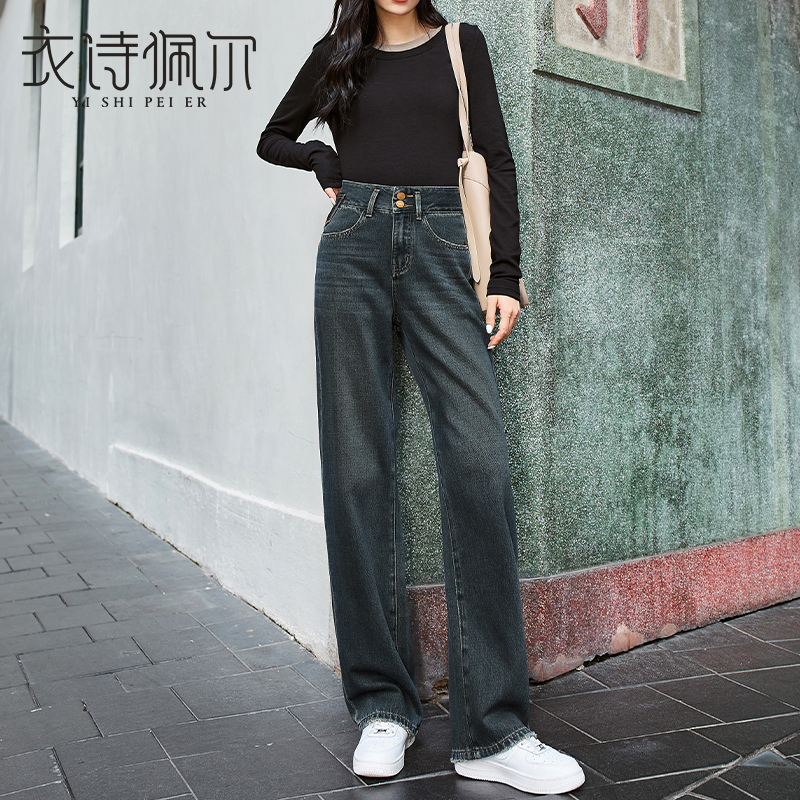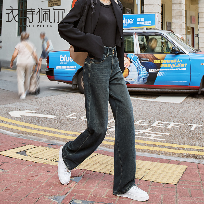 Cement Grey Broadlegged Jeans Woman high waist 2023 Fall new loose Lean Splicing Pituitary Straight Drum Pants-Taobao