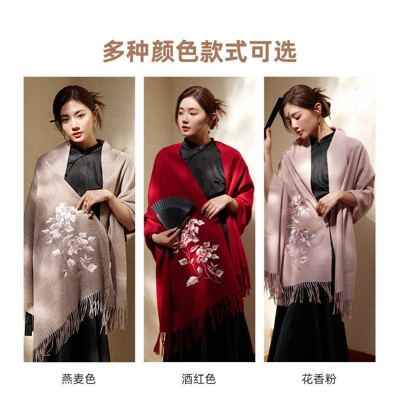 Shanghai Story 2023 Autumn Winter New Scarves Women Wool Shawl Embroidered Warm Surrounding Neck Gift Boxes Send Mother Elders-Taobao