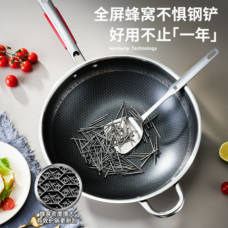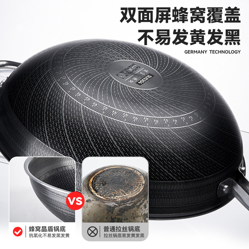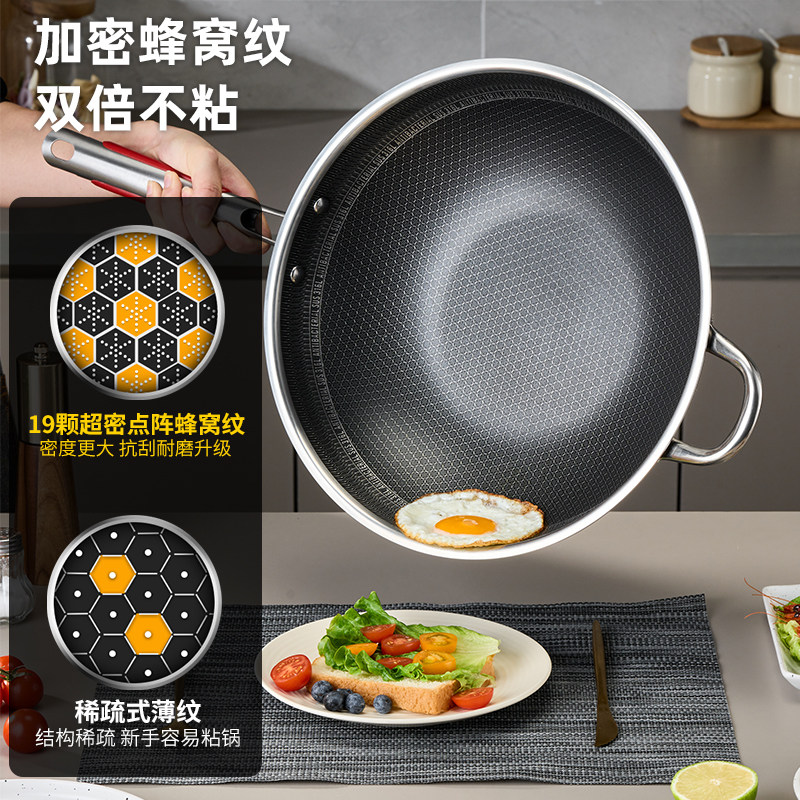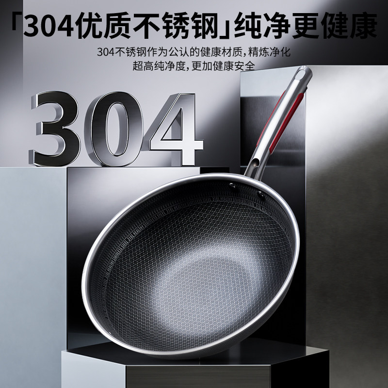 304 stainless steel frying pan honeycomb non-stick pan Home frying pan gas stove oven special without dipping flat bottom pan-Taobao