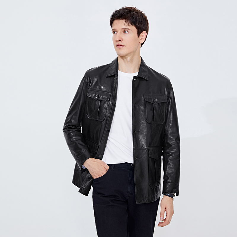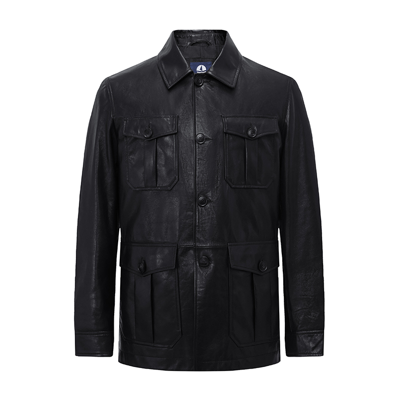 Mountain goat leather] NavigaCare Italy small sailing black hunting leather coat jacket men's fall collar leather jacket-Taobao