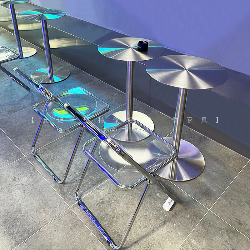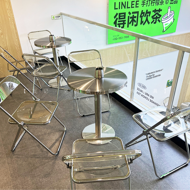 Net Red Milk Tea Sweet Shop Stainless Steel Table And Chairs Combined Industrial Wind Cafe Bar Cold Drinks Small Eating Shop Folding Chair-Taobao