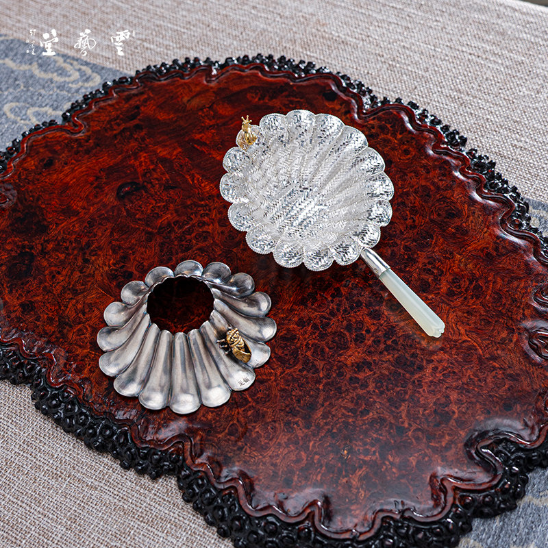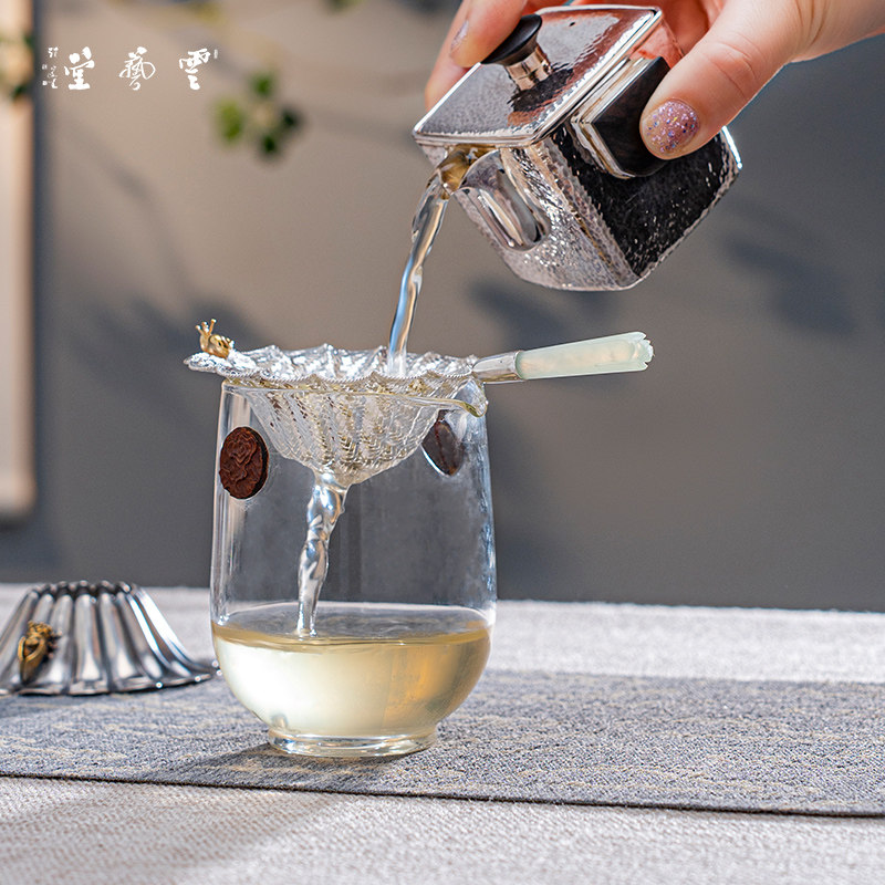 The Yunshu Cloud Art Hall pure silver 999 pure hand woven tea leak tea leak domestic tea set woven jade handle tea leakage suit-Taobao