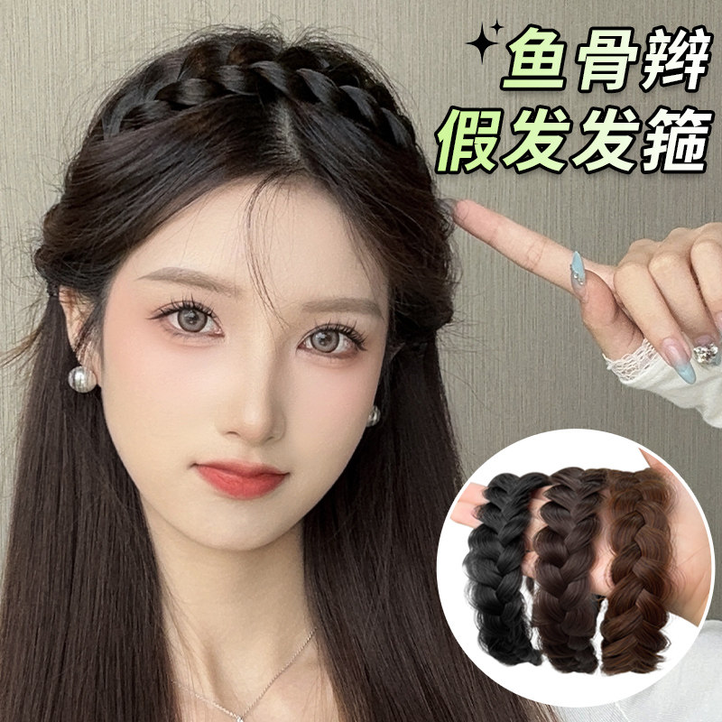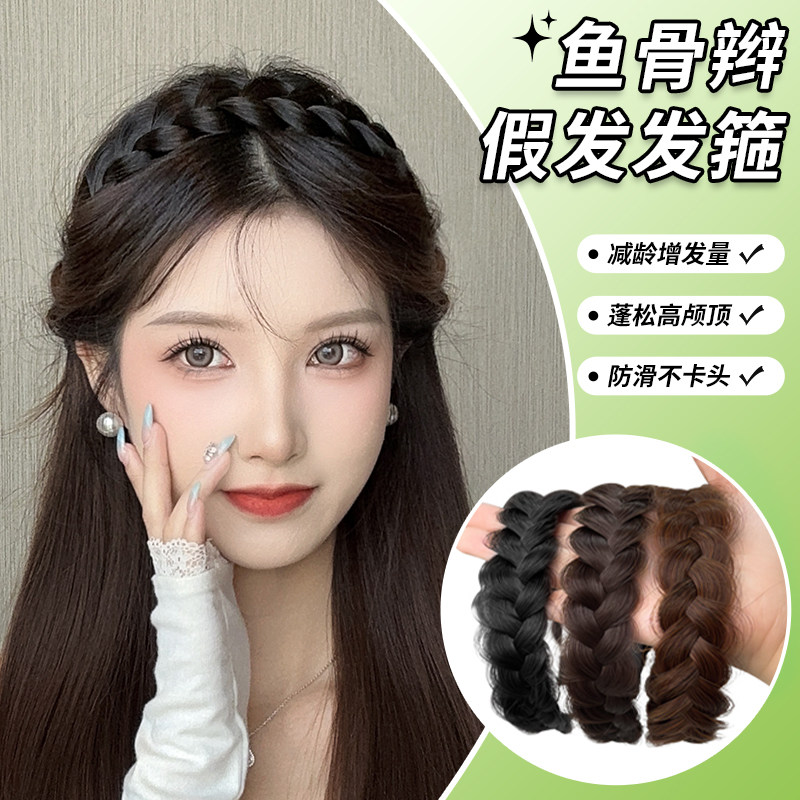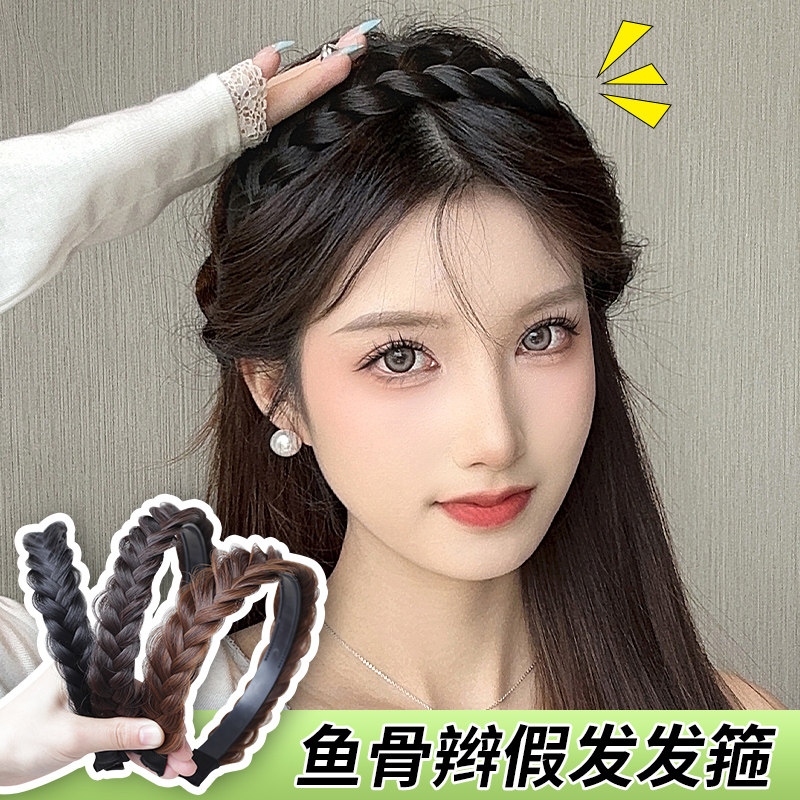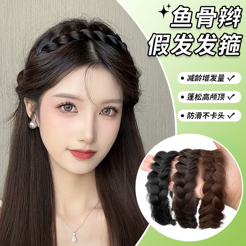 Fish Bone Braid Wig Hair Stirrup Integrated Female Twist Hair Braid Hair Accessories Hair Strap 2023 New Web Red Headwear High Cranial Tops-Taobao