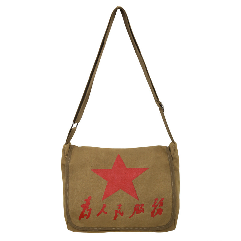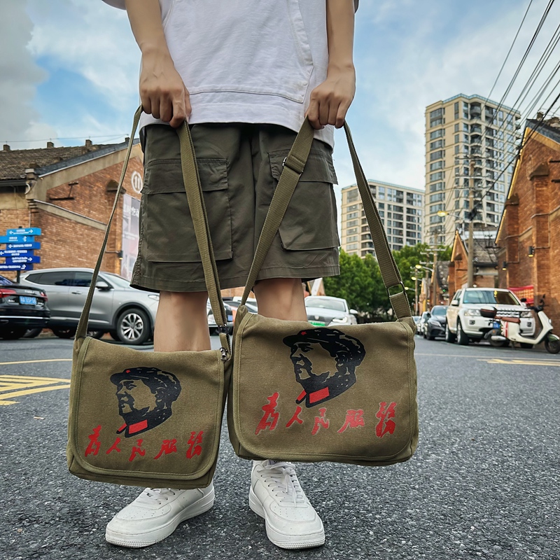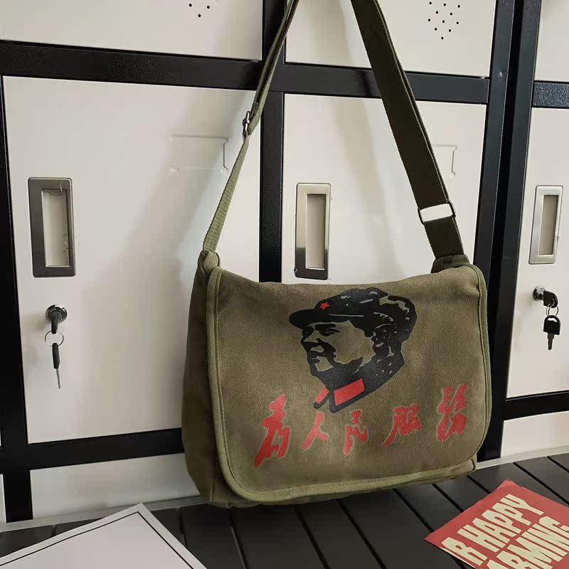 Chairman Mao served the People's Canvas Diagonal Satchel Shoulder and Men's Retro Square Squared Casual Red Army Bag batch to be made-Taobao