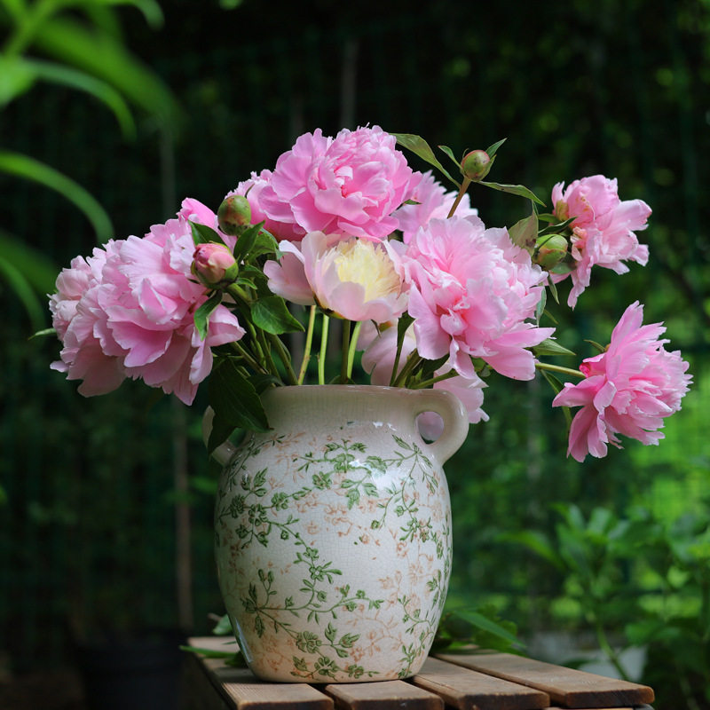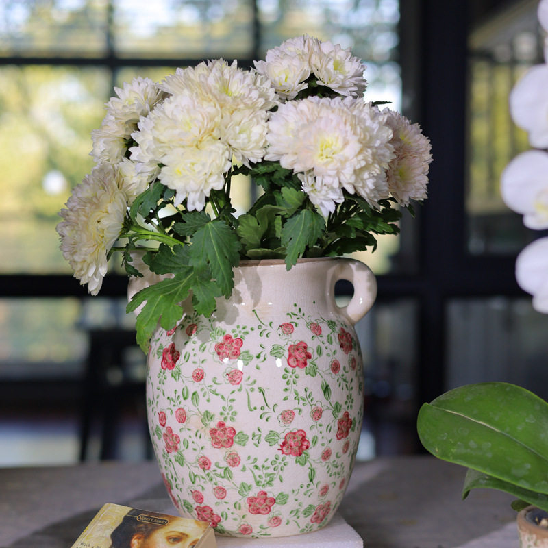 Double ear double powder vase small number two-ear double powder flower vase three-colour double-ear vase green crushed flower double-ear vase with double ear green flower vase