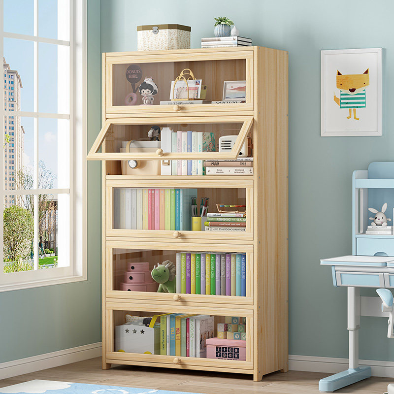 Solid wood bookcase bookcase on floor shelves Home Children's living room Toy storage cabinets Multi-level student Dormitory Storage-Taobao