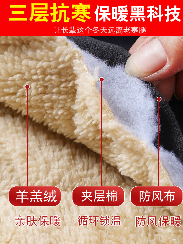 Winter Dad cotton pants outside wearing Northeast warm pants 70 year old grandpa Aged Plus Suede Thickened Men Casual Pants-Taobao