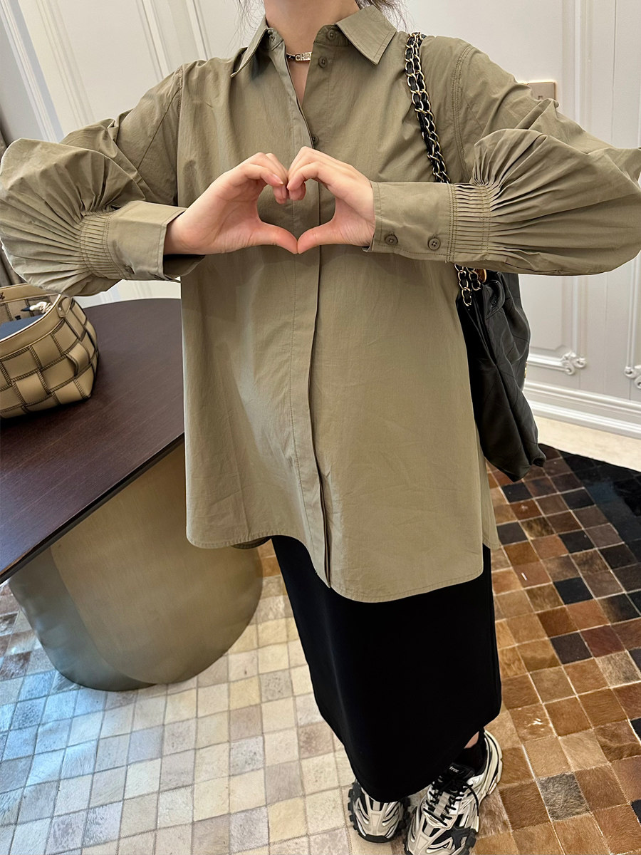 LeoMami Gestational Woman Dress Autumn Style Design Sensation Pleats Cuffs Shirt Loose Foreign Gas Trendy Casual Little Crowdshirt-Taobao