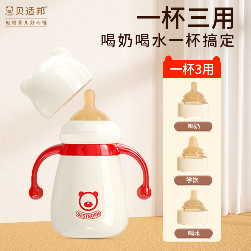 Infant insulation feeding bottle with straw newborns Small month-old Children's school Drinking cup baby baby anti-flatbed gas water glass-Taobao