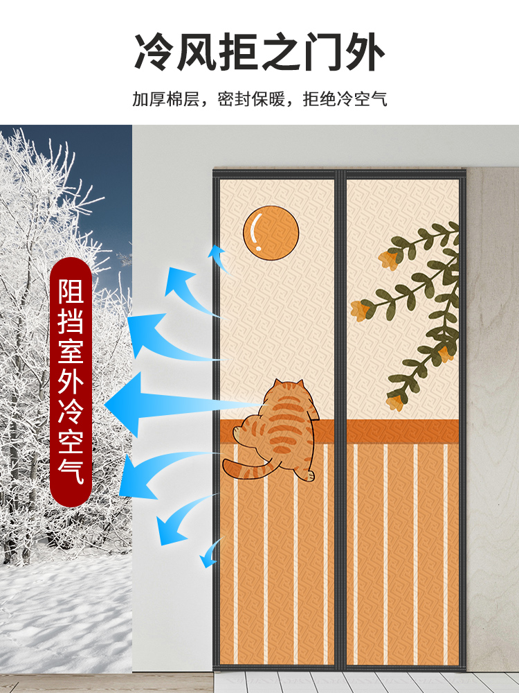 Winter Thickened Windproof Cotton Door Curtain Outdoor Bedroom Plus Cotton Warm Magic Sticker Wind Shield Magnetic Attraction Home Partition Door Curtain-Taobao