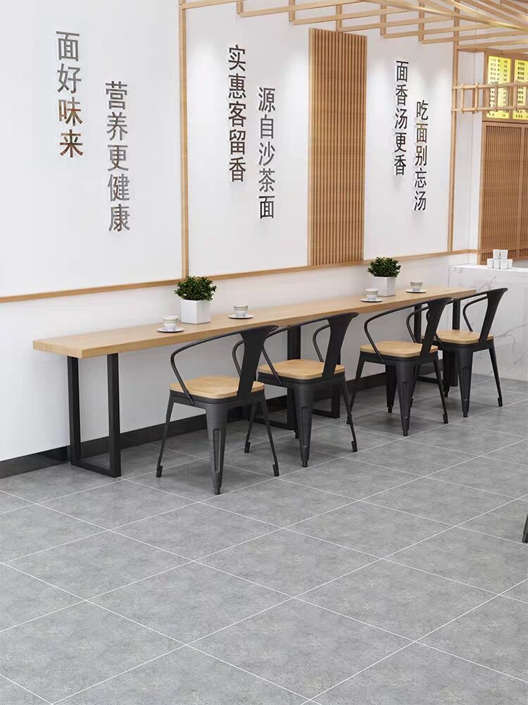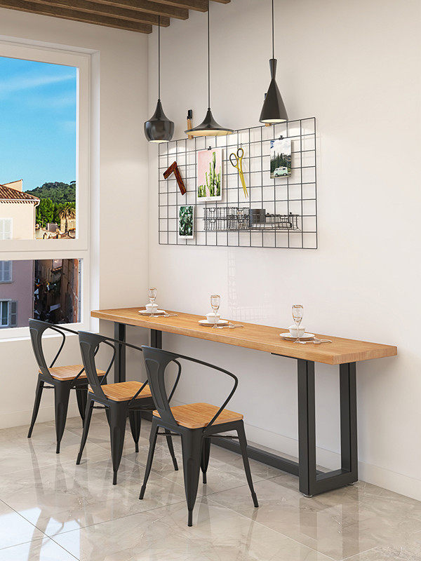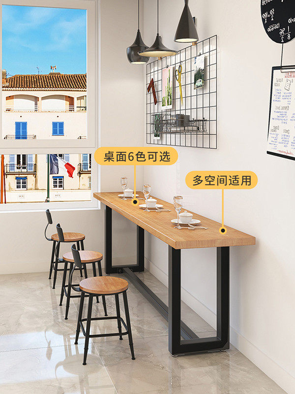 Commercial Solid Wood Bar Table Close To Wall Strip Table Milk Tea Shop Bar High Foot Table Day Material Canteen Table Chairs Combination-Taobao