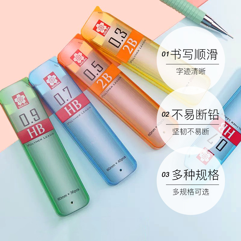 (self-employed) Japan SAKURA cherry blossom 0 3mm Automatic lead refill Large capacity 0 7 5 0 0 9mm Anti-break automatic pencil replacement Core HB tough and difficult to break student painting