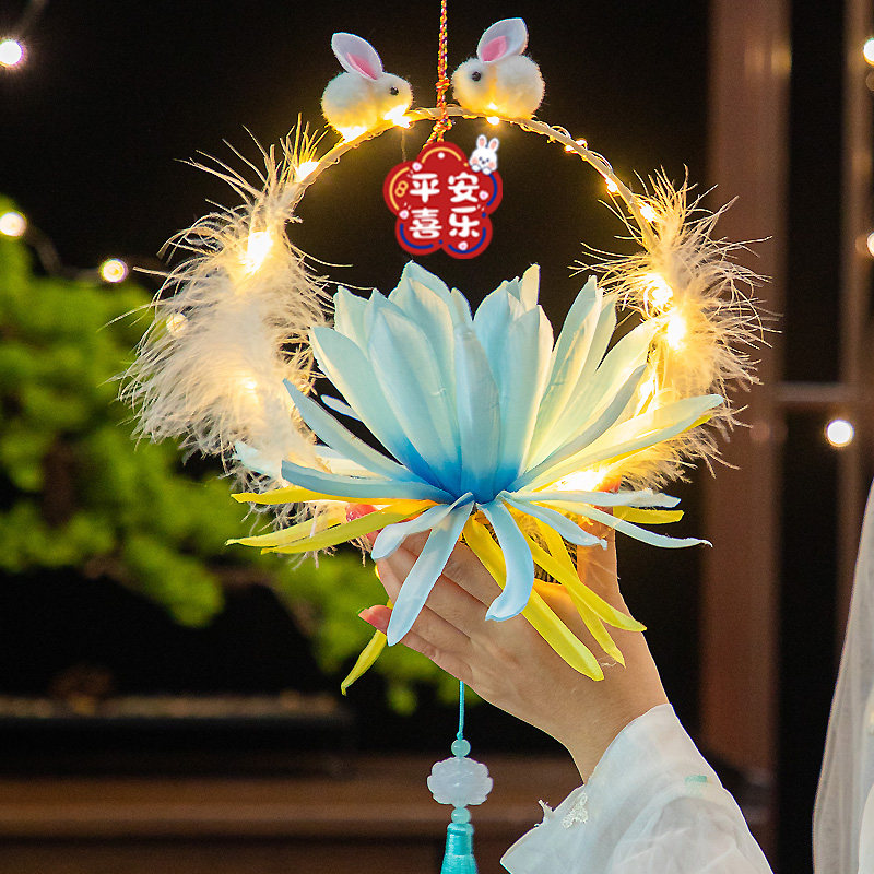 Beige-Haitang Flower Light (Mid-Autumn Festival diy lantern) pink-haitang lanterns (Mid-Autumn Festival diy lantern) Blue-Haitang Flower light (Mid-Autumn Festival diy lantern) pink-flower ring rabbit