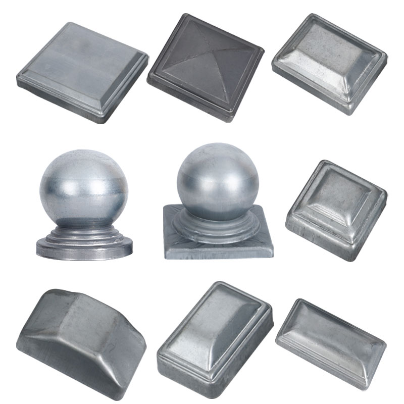 Iron art square pipe blocking head guardrail seal top stamping closure railing coping with round pipe ball cap zinc steel decorative column head-Taobao