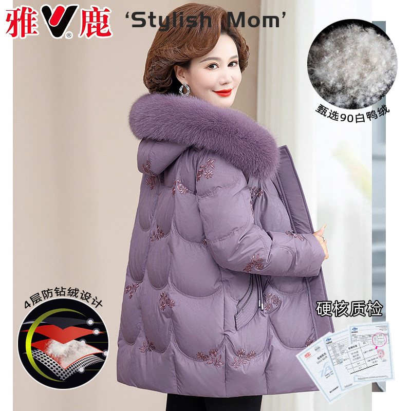 Yose's mother's down clothes in the middle of the winter The elderly lady thickens the noble big code foreign air winter dress coat-Taobao