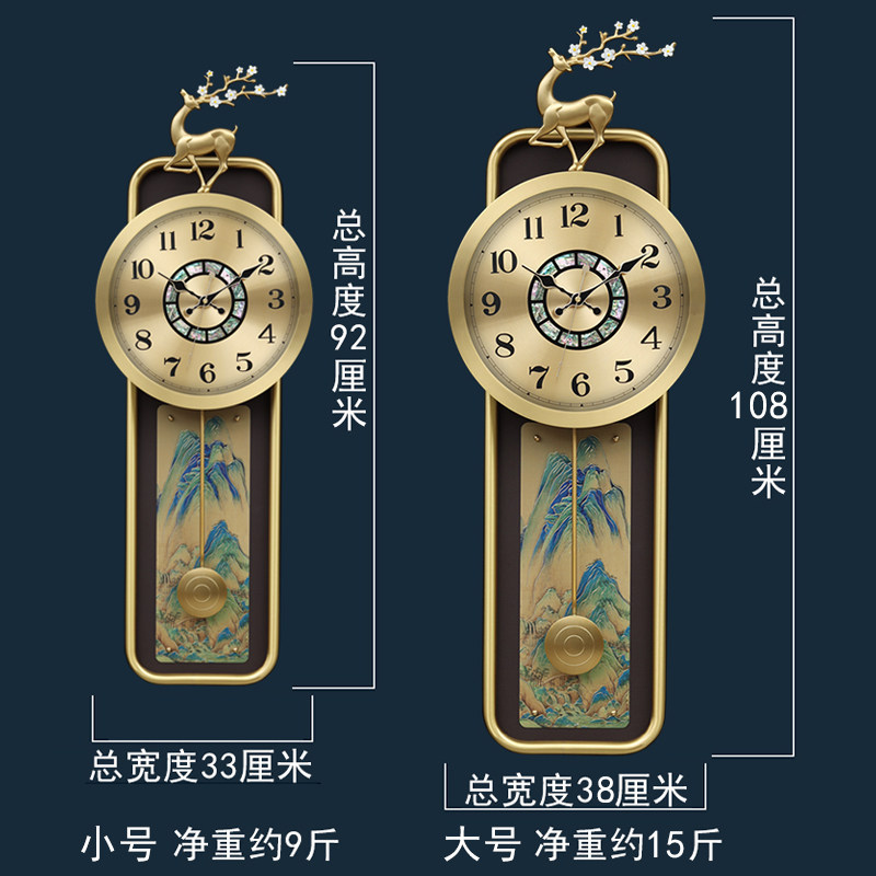 Keqin New Chinese All-copper hanging bell Modern Light Extravagant Hanging Watch Silent Living Room Rocking Watch Atmosphere High-end clock-Taobao