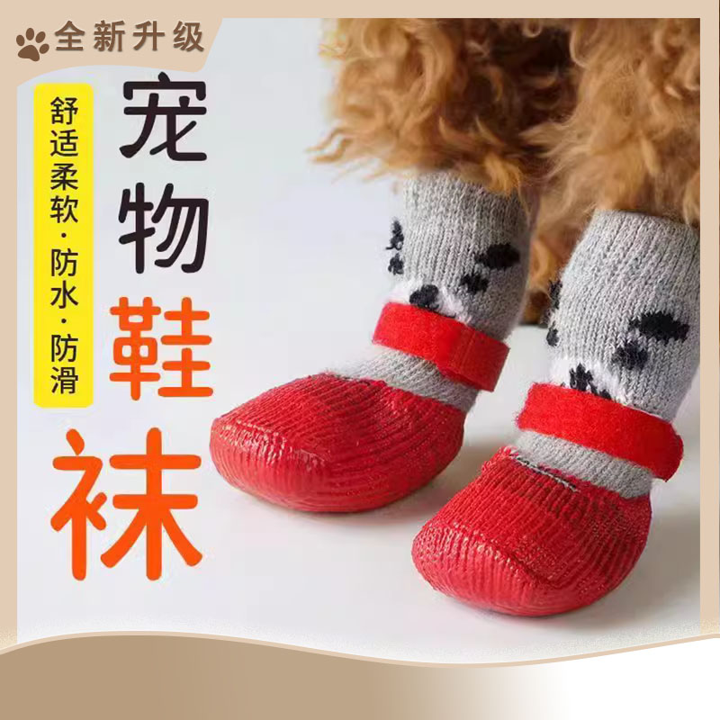 Dogs shoes small dogs waterproof and anti-fall, medium dog pets socks winter anti-dirty teddy Bears Koki shoe cover-Taobao