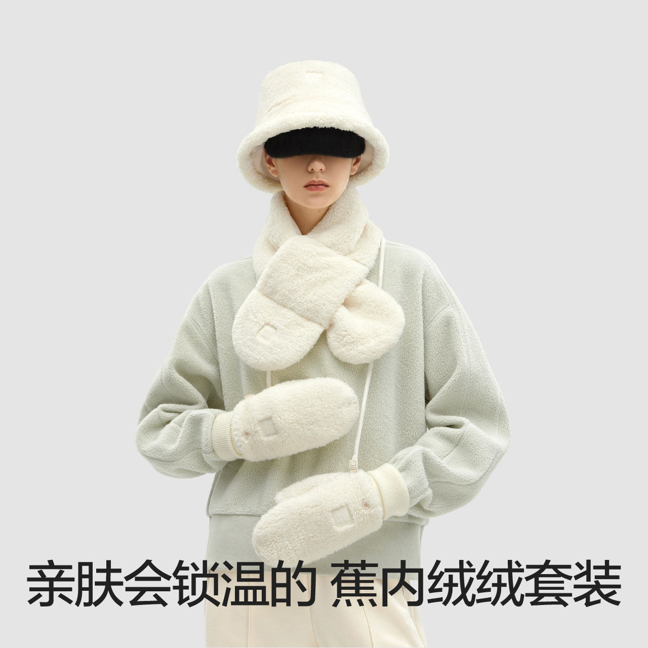 Banana inside 3-series scarf fisherman hat gloves imitation lamb velvet warm surrounding neck and neck commuter wear for winter 3 fitting-Taobao