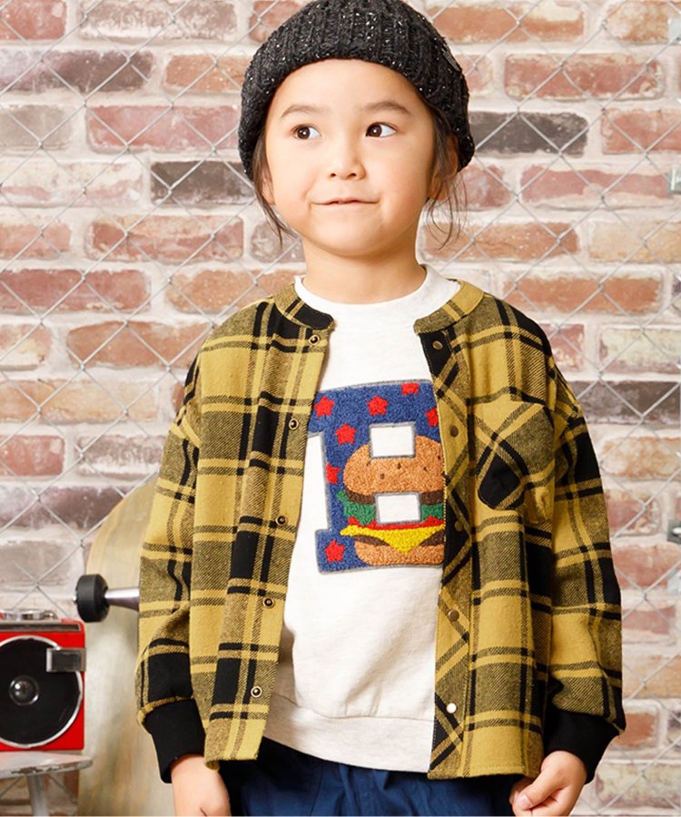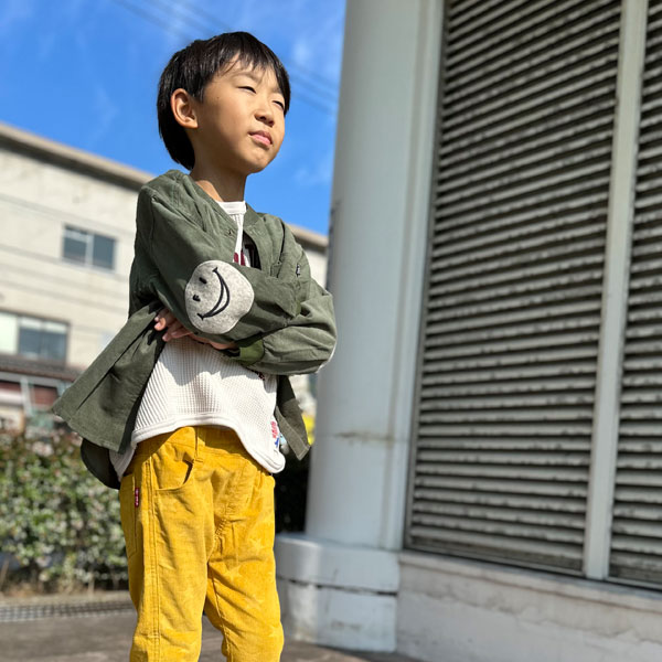 Japan F O KIDS 2023 autumn children cartoon laughs face protection elbows shirt jacket slim jeans color jacket-Taobao
