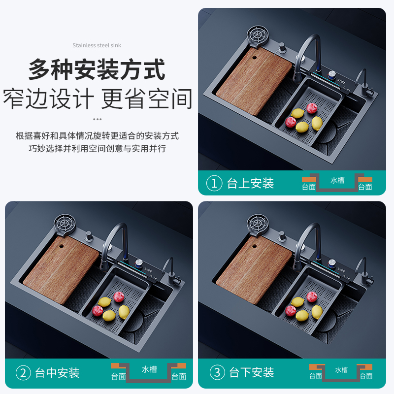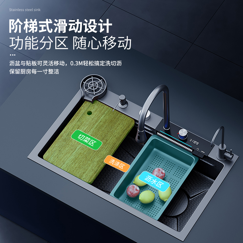 MJONI German home kitchen sink washbasin stainless steel 304 antibacterial honeycomb multifunctional thickened large single slot-Taobao