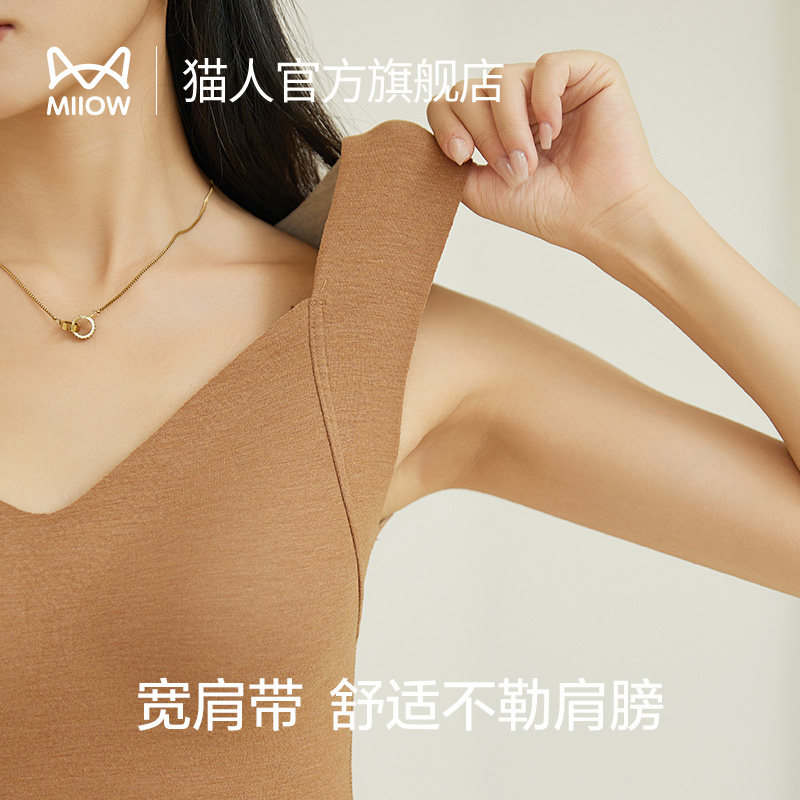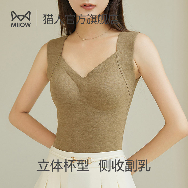 Cat people warm underwear female autumn and winter integrated without wearing bra to gather without marks and vest autumn clothes wool silk to undercoat-Taobao