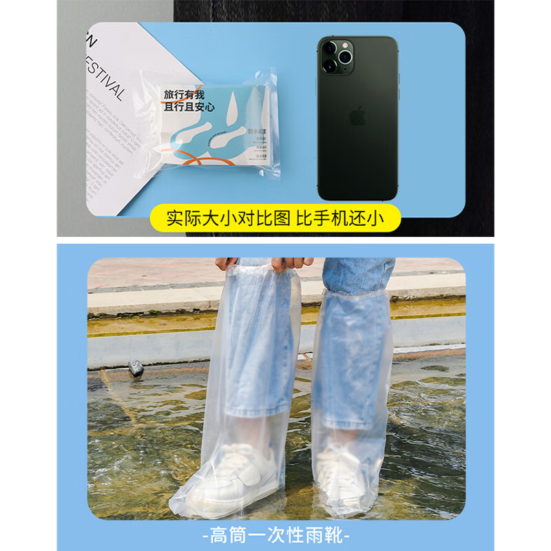 Family good card disposable high cylinder shoe cover thickened anti-slip adult portable outdoor drift transparent compression rain shoe cover-Taobao