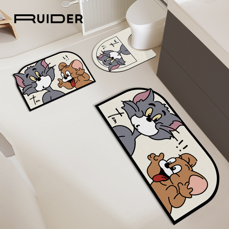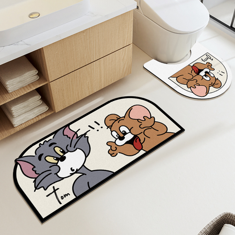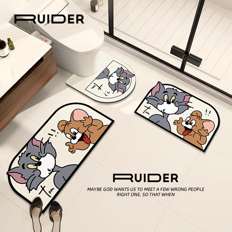 A-toilet cushion wash terrace cushion shower door cushion three sets B-toilet cushion wash terrace cushion shower door cushion three sets of cat and rat shower door absorbent cushion❤40x60cm cat and old