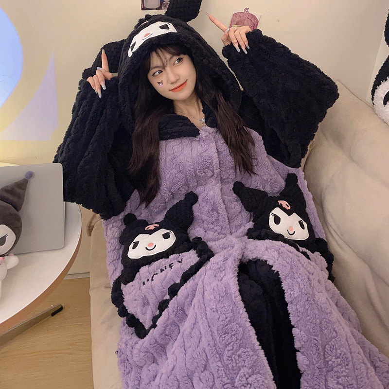 Coral Suede Sleeping Robes Long-Thickened Gushed Coulomie Sleepwear Woman Winter Sky Flannel Cute Home Suit Suit-Taobao