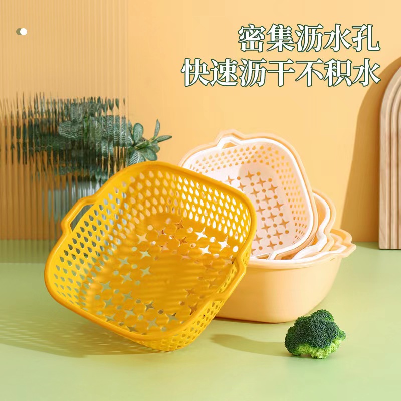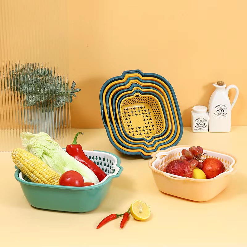 2 pieces NEW DOUBLE LAYER DRAIN BASKET PLASTIC WASHING VEGETABLE BASKET WASHING BASIN HOME KITCHEN WASHING VEGETABLE FRAME WASH FRUIT BLUE-TAOBAO