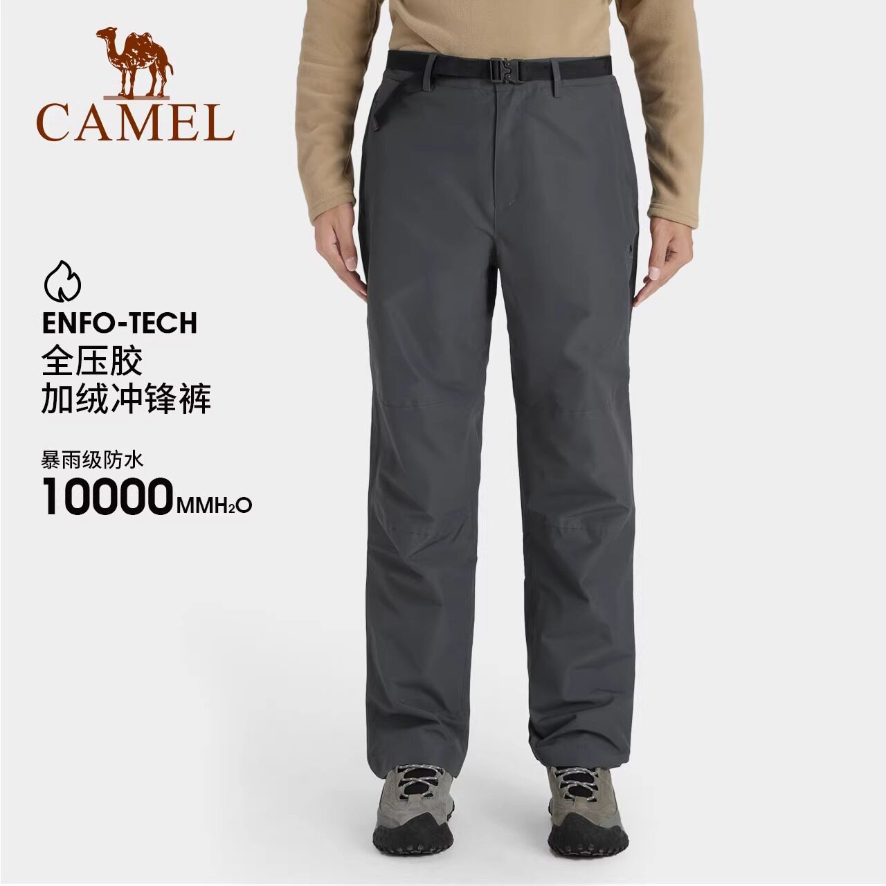 Camel outdoor punching pants male windproof and waterproof soft shell pants lovers thickened with velvety hiking pants female wear resistant long pants-Taobao