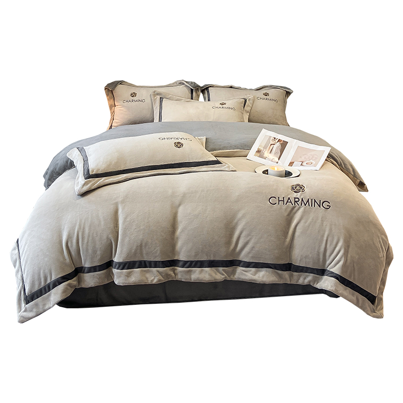 Milk Suede Four Pieces Winter Thickened Coral Suede Bed Linen Flannel Quilt Cover Bed Three Sets 2023 New 4-Taobao