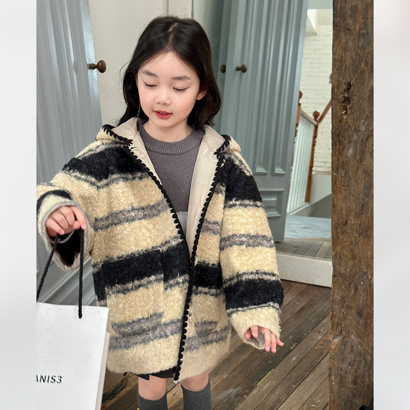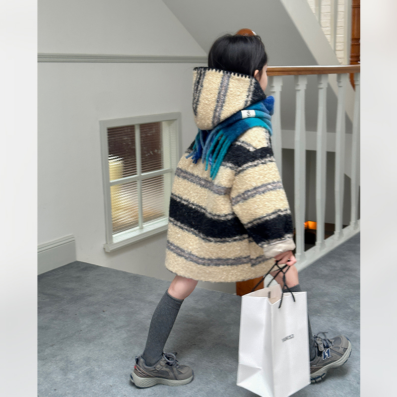 Lacquer Number Scout girl's Korean version trendy striped Mao's big coat Winter dress New CUHK Tong Hat Warm Jacket Tide-Taobao