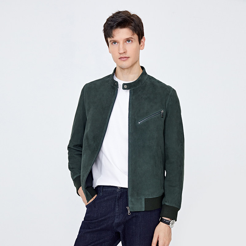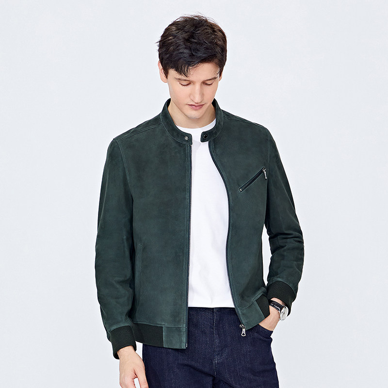 Sheep's leather] Navigare Italy small sailing green leather clothing men's fall Harlington jacket over fur coat-Taobao