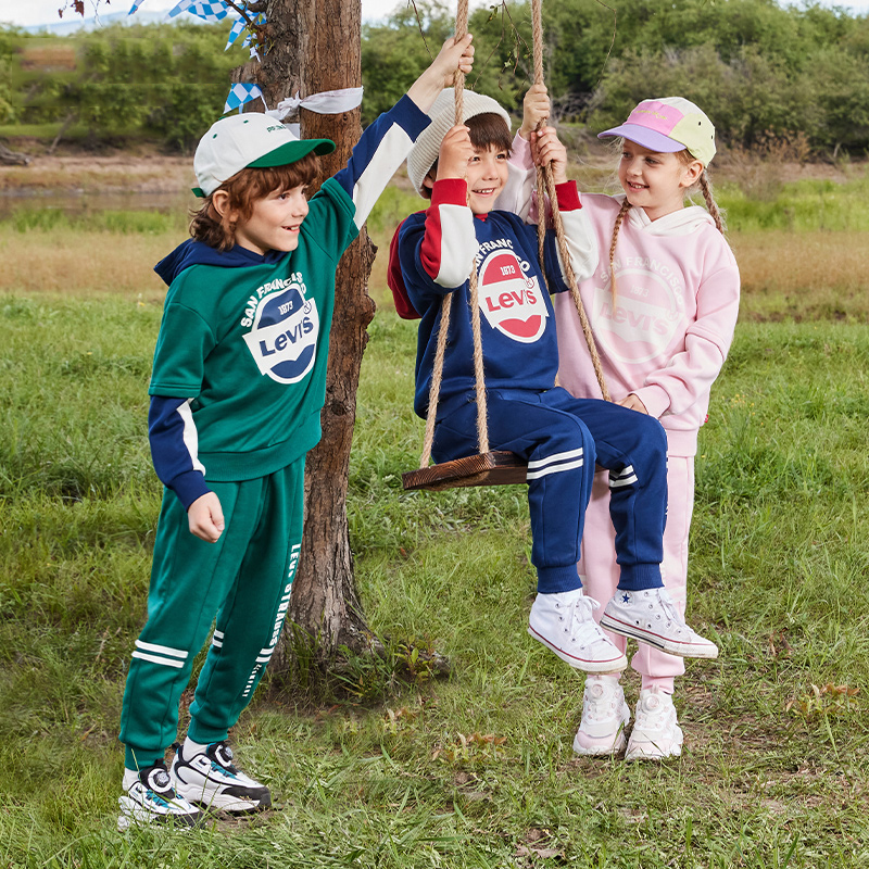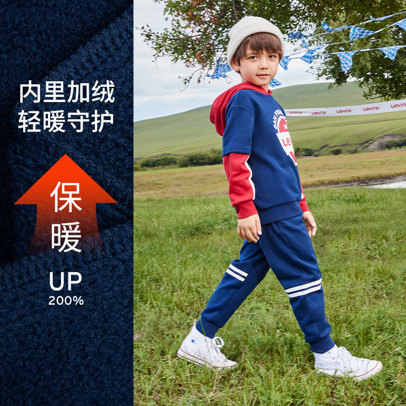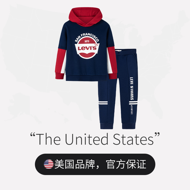 (self-employed) Levis children's clothing leisure sports Two sets of male and female children's coulter caps suit sweatpants thin suede-Taobao