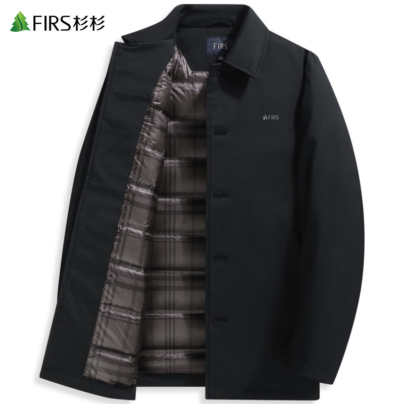 (Goose down) cedar medium long style wind coat men's 2023 winter new turn-collar warm business casual commuter jacket-Taobao