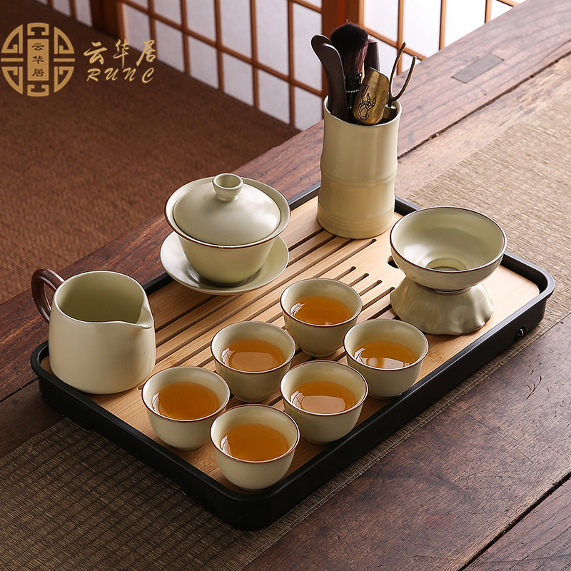 Ru Kiln Tea Set Chinese Style Ceramic Kung Fu Bubble Teapot Tea Cup Tea Tray Office New Light Luxury High-end Gift Box-Taobao