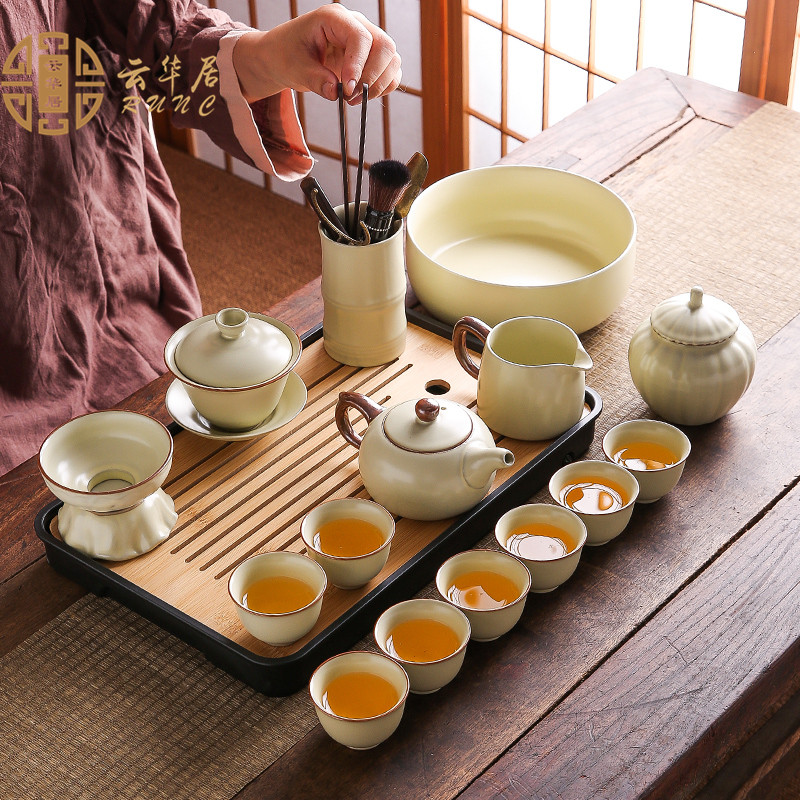 16 head rice yellow Ru kiln teapot set (gift box installed) 16 head rice yellow Ru kiln teapot set (safety loaded) tea tray 13 head rice yellow Ru kiln teapot set (gift box installed) 10 head rice yellow Ru kiln cover bowl