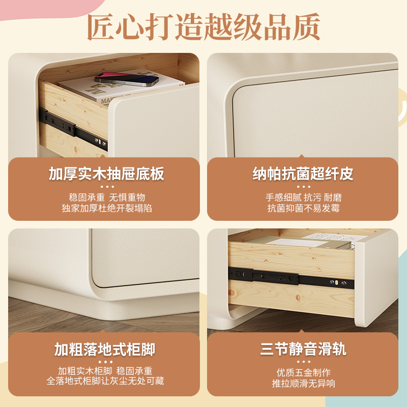 Solid wood cream wind bed head cabinet minimalist modern bedroom home bedside small cabinet light and luxurious high sense storage cabinet-Taobao