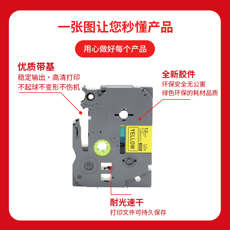 Strong adhesive film 6mm white bottom black character strong adhesive film 6mm Yellow bottom black character strong adhesive film 9mm white bottom black character strong adhesive film 9mm Yellow bottom black character strong adhesive film 9mm red bottom black character