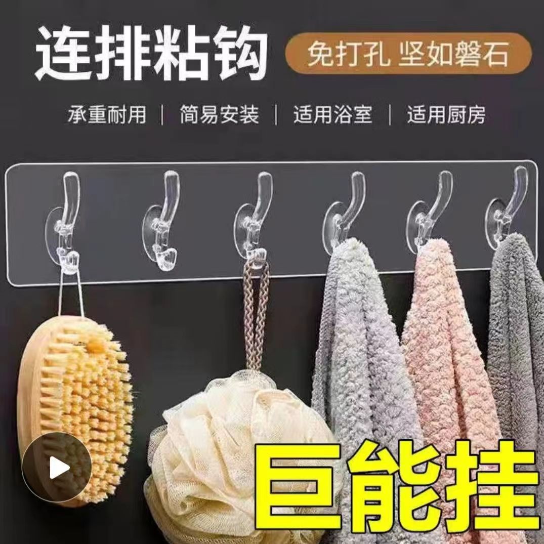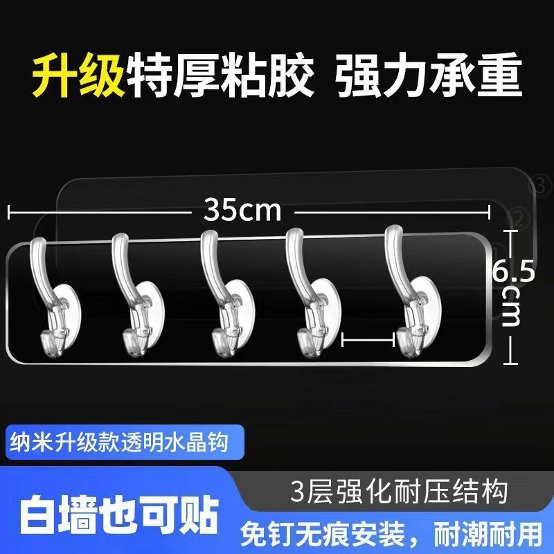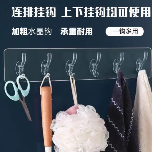 3 Six Tandem Rows Hook Free of perforated Kitchen Racks Glued Hook Door Rear Toilet Bathroom Crystal Towel Rack-Taobao