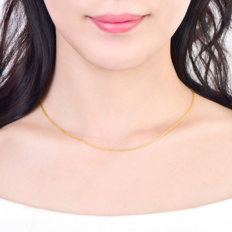 Canail foot gold 9999 gold Chopin chain O word chain cross chain ten thousand words chain necklace lock bone chain female 24K rubber silk-Taobao