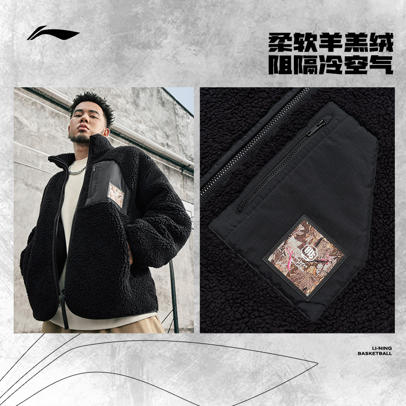 Li Ning Speed Warm Suede Jacket) 2023 Autumn Winter BADFIVE Basketball Series Standout Plus Suede Warm Sportswear Man-Taobao