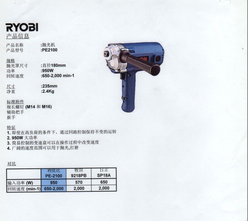 Japan RYOBI power tools Shanghai general agent PE-2100 polishing machine