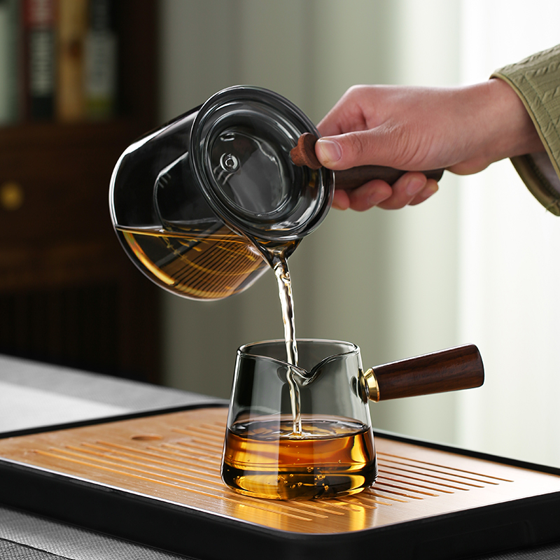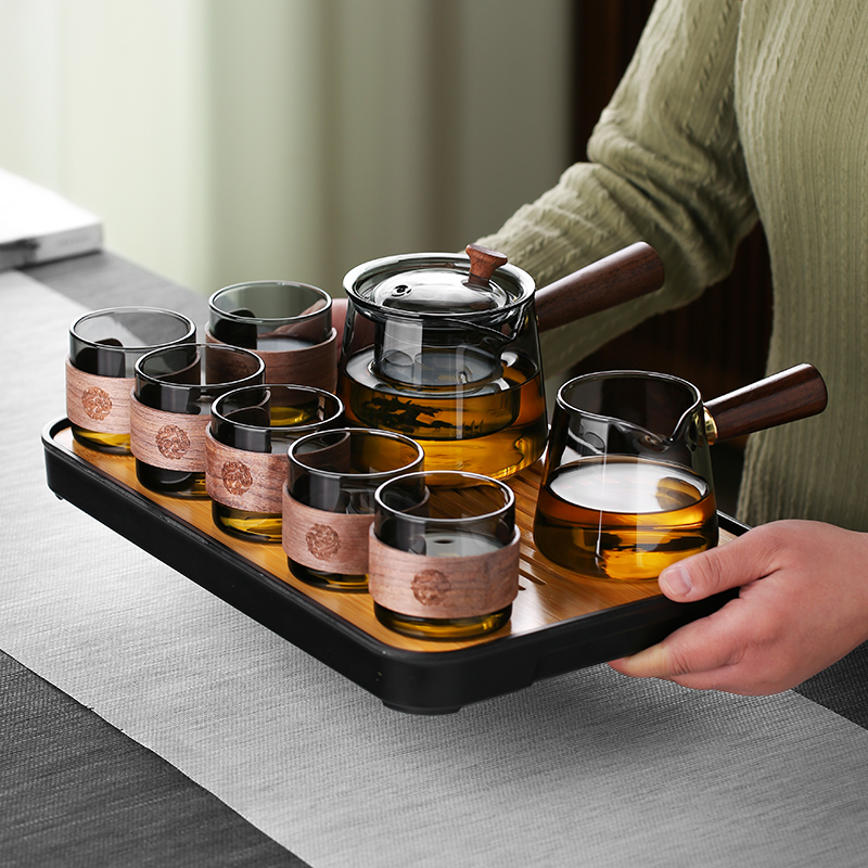 Glass tea set suit Home tea tray Small office Living room drinking tea Gongfu tea cup Heat-resistant tea pot 489-Taobao