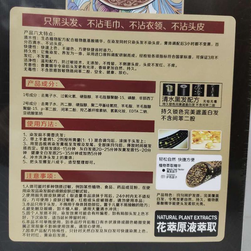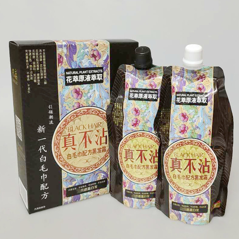 Soft bright water Crystal black oil set 500ml 2pcs Black dye Lead-free mercury ammonia Anti-allergic quick color cover white hair
