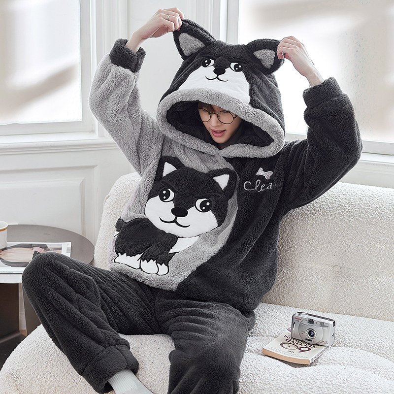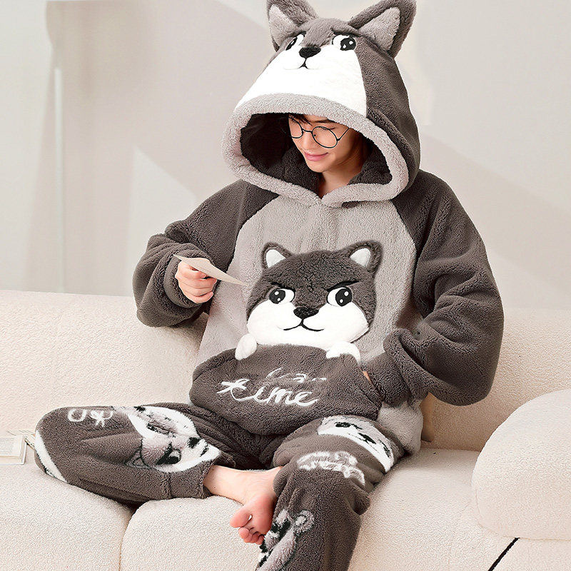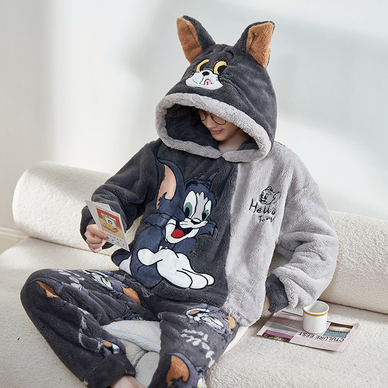 2023 new coral suede pyjamas men's autumn winter plus suede thickened teen flannel men's home conserved winter style-Taobao