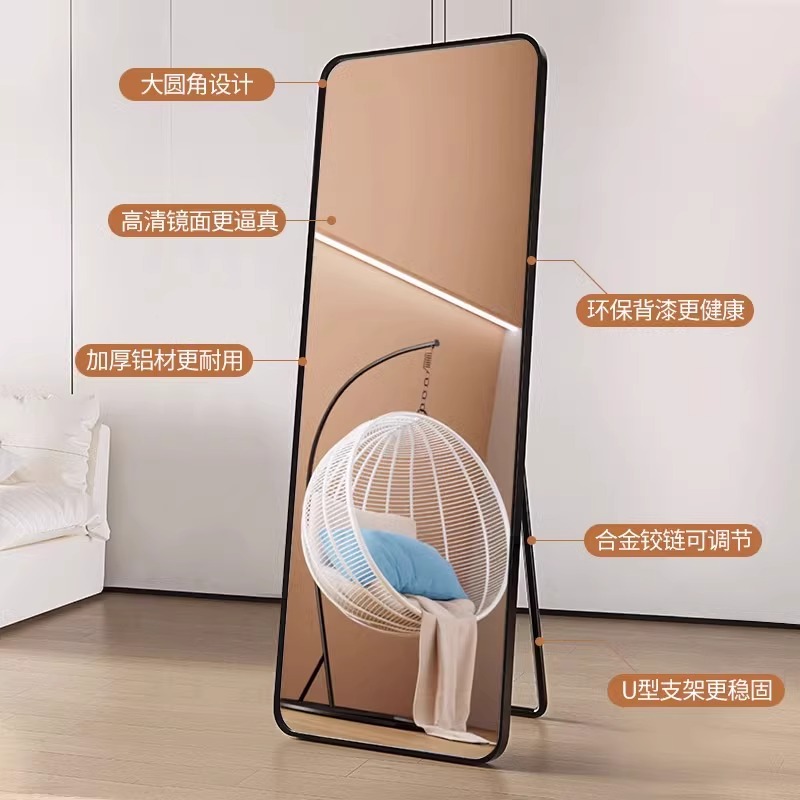Full Body Mirror Dress Floor Mirror Home Wall-mounted Stick Wall Mesh Red Girl Bedroom Makeup Hanging Wall Dorm Trial Dressing Goggles-Taobao