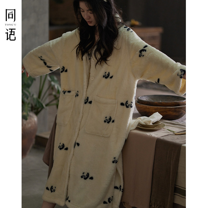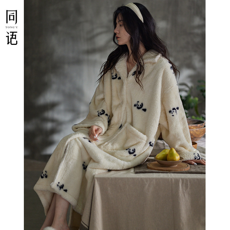 Homie Sleepwear Woman Autumn Winter Coral Suede Thickened family clothes Lady cute extras in winter pyjamas with velvet-Taobao