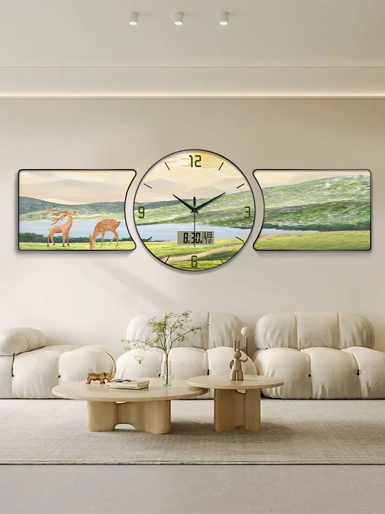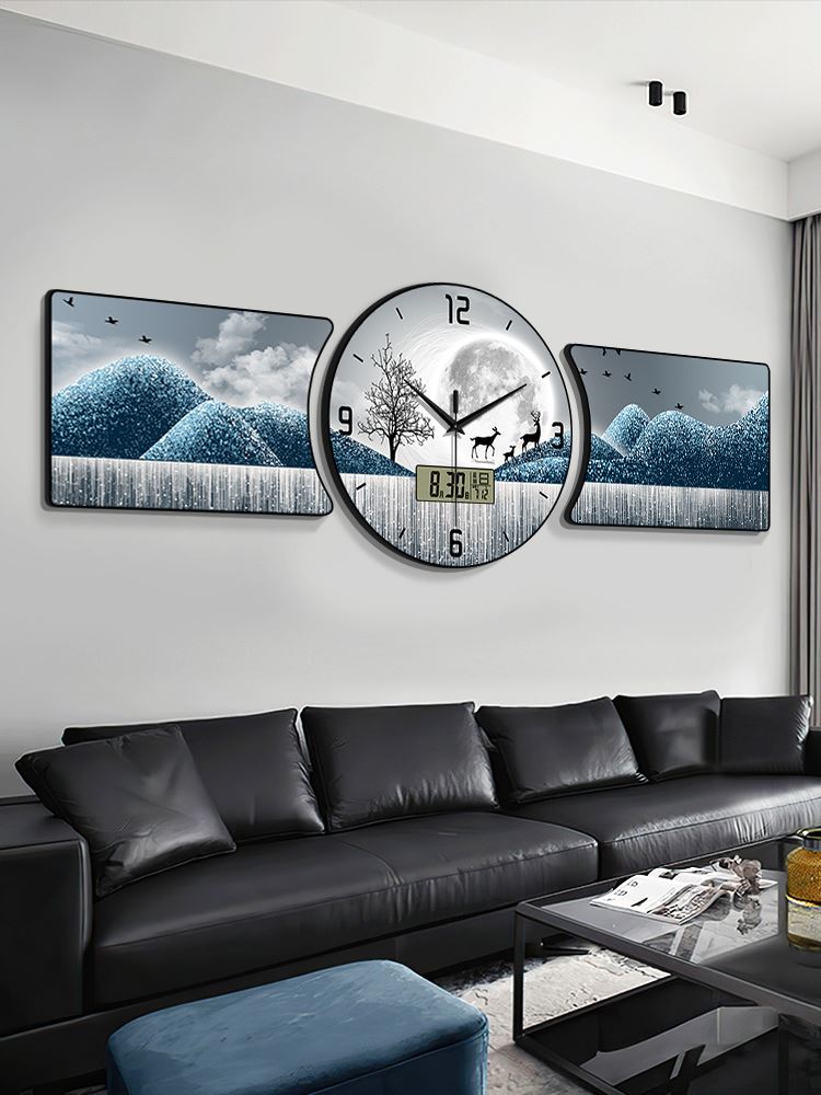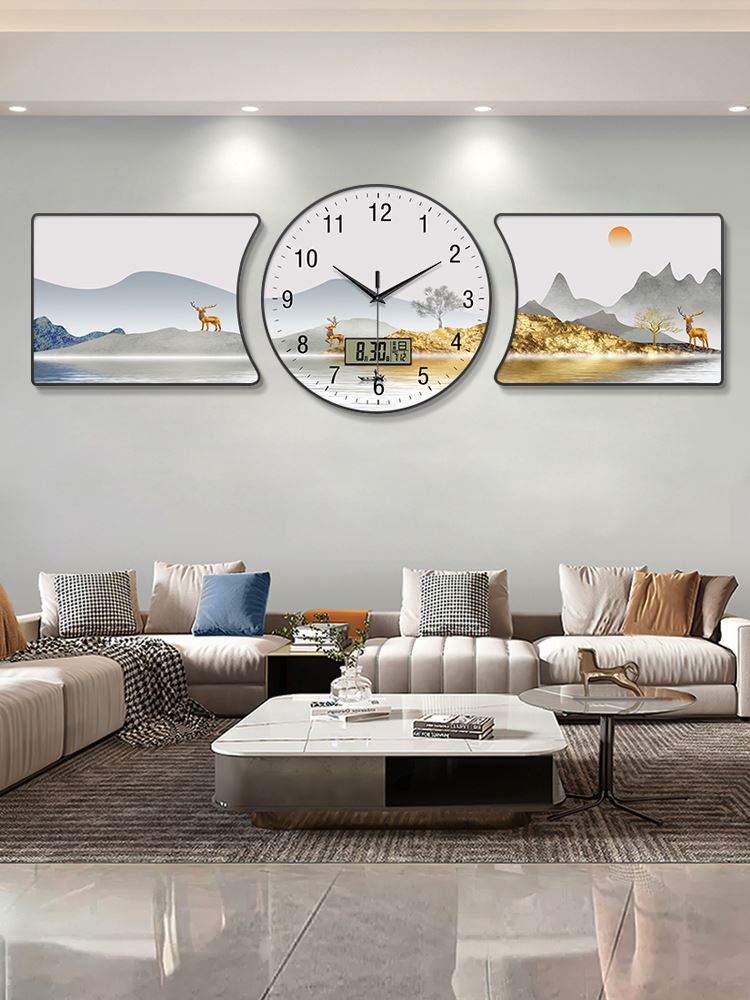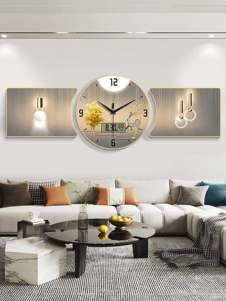 Nordic Light Lavish Living Room Decoration Painting Perpetual Calendar Electronic Clock Hanging Clock Living Room Triple Composite Drawing Table Hanging Wall Clock-Taobao